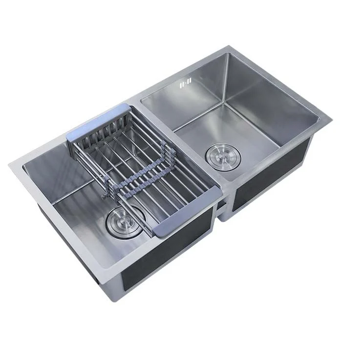 حوض مجلى مزدوج 85 * 45 سم مصنوع من خامات الاستيل عالي الجودة لضمان استدامة تدوم طويلاً